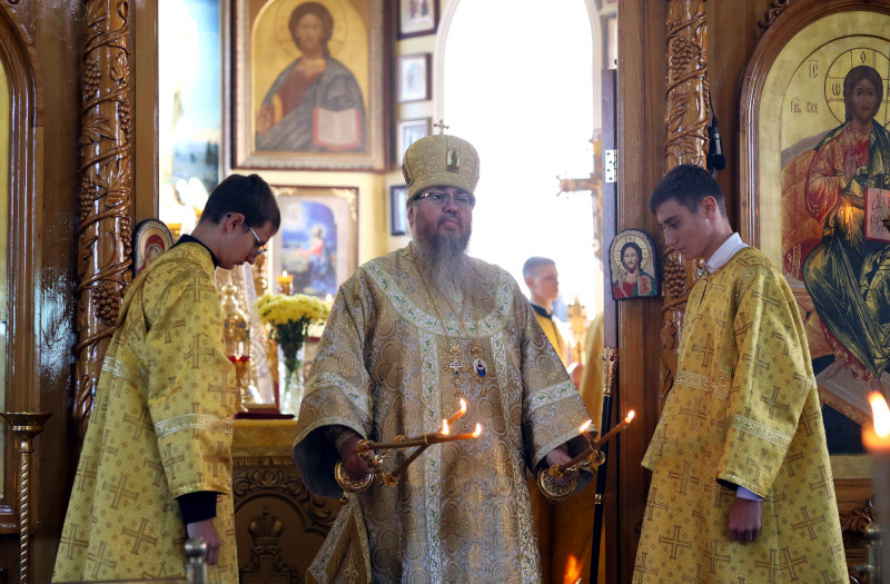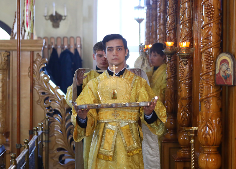 Божественную литургию в этот день в Вознесенском соборе совершил Высокопреосвященный Владимир, архиепископ Петропавловский и Булаевский. Владыке сослужили прот. Сергий Первушин — секретарь епархиального управления и иером. Серафим (Максимов) — клирик собора. Диаконский чин Владимир Бартоль и Алексей Александрович. Песнопения Литургии исполнил хор собора под управлением регента Затай А. А.