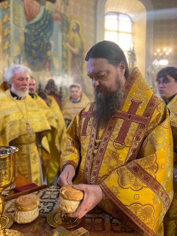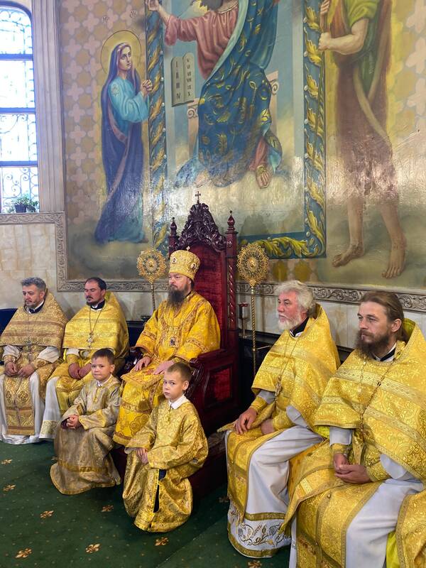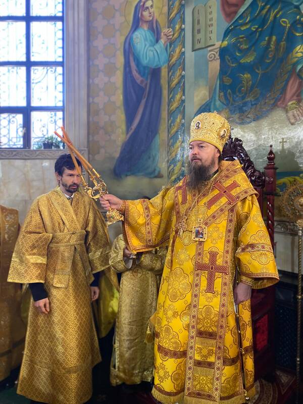 В завершении Литургии Его Преосвященство поздравил духовенство и прихожан с воскресным днем, церковным Новолетием и днем памяти святых покровителей христианского супружества, и обратился к собравшимся с архипастырской проповедью.