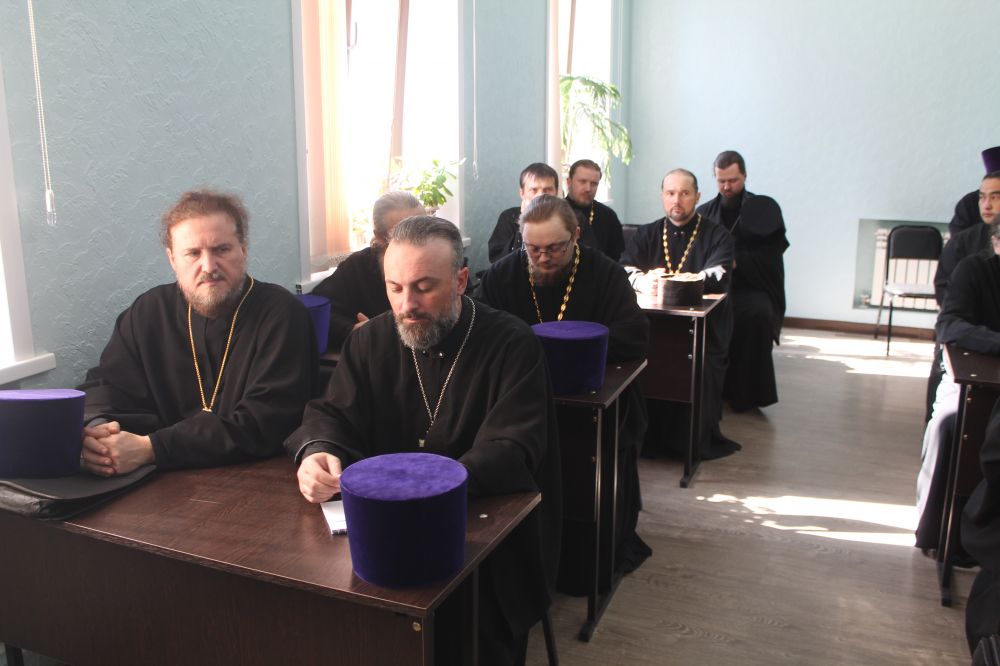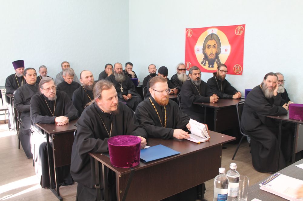 В собрании приняли участие: благочинные церковных округов, настоятели и клирики храмов, руководители епархиальных отделов.