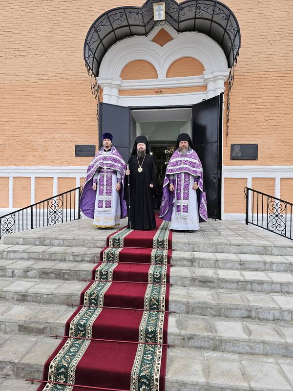 Его Преосвященству сослужили: ключарь Свято-Успенского кафедрального собора г.Атырау, иеромонах Варфоломей (Мостовщиков), клирик Благовещенского храма г.Актау, иерей Михаил Соколов, клирик кафедрального собора Михаила Архангела г.Уральска, иерей Андрей Александров, клирик кафедрального Свято-Успенского кафедрального собора г.Атырау, иерей Александр Ермаков, клирик кафедрального собора Михаила Архангела г.Уральска, иеродиакон Арсений (Рыбальченко), клирик кафедрального Свято-Успенского собора г.Атырау, диакон Богдан Муликов.