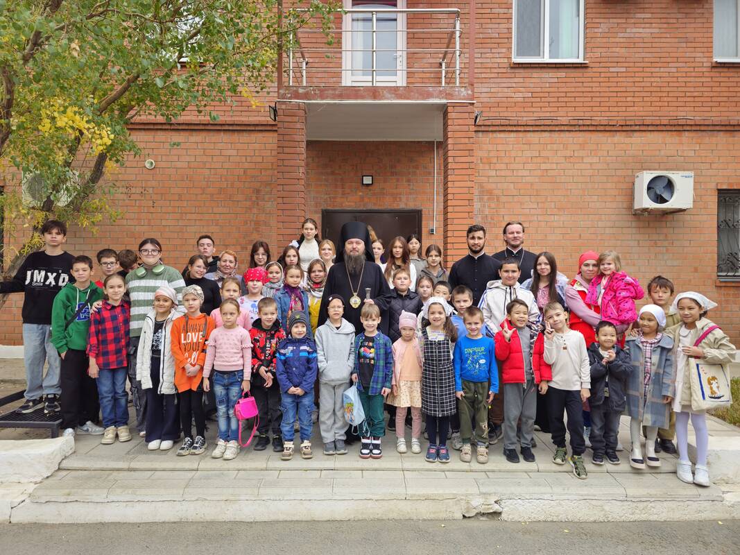 По окончании богослужения Его Преосвященство посетил воскресную школу и поздравил воспитанников с праздником.