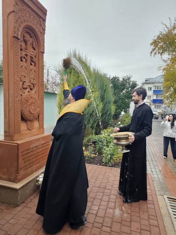 В завершении Богослужения был совершён праздничный Крестный Ход вокруг храма и прочитана молитва, обращенная к Пресвятой Владычице нашей Богородице и Приснодеве Марии. В этот день управляющий Уральской и Атырауской епархией епископ Вианор освятил поклонный Крест, сооруженный местными казаками, и армянский крест-памятник "Хачкар"на территории кафедрального собора Михаила Архангела г.Уральска. На мероприятии присутствовали представители диаспоры во главе с председателем армянского этнокультурного центра «Мирзоян» Аветиком Рубеновичем Амирханяном.
