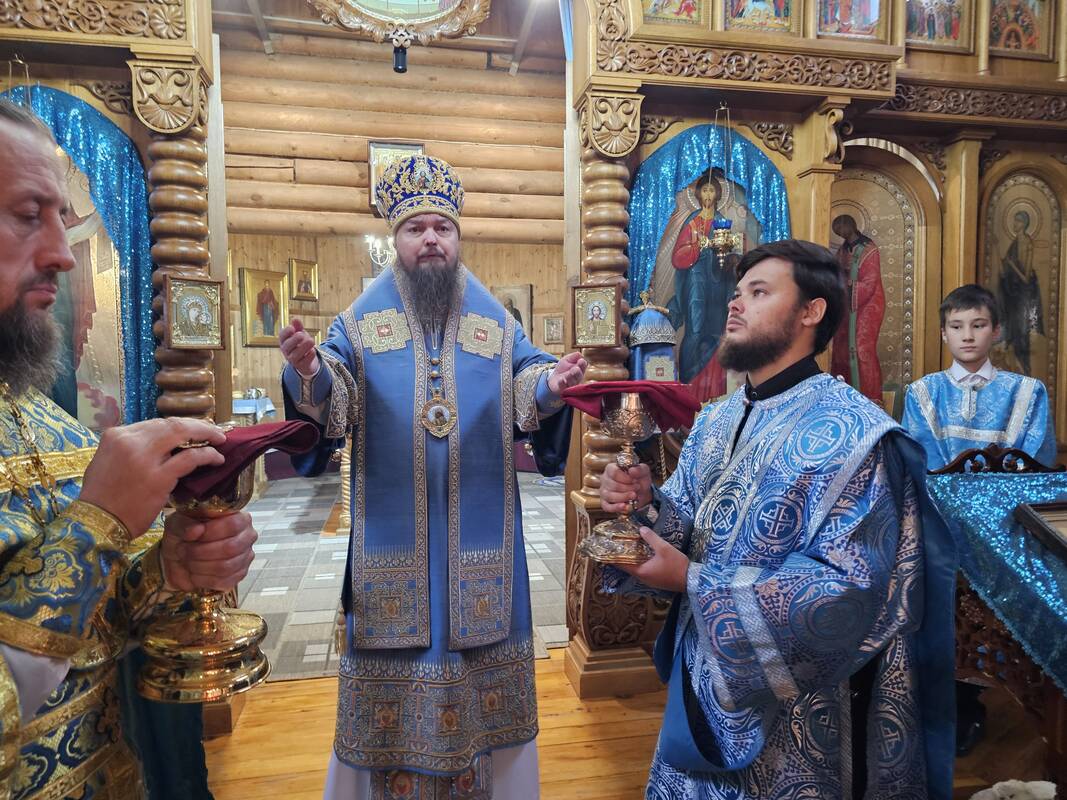 Накануне епископ Вианор совершил Всенощное бдение в кафедральном соборе Михаила Архангела г.Уральска с акафистым пением Покрову Божией Матери, и на Богослужении Утрени помазал молящихся освященным елеем.