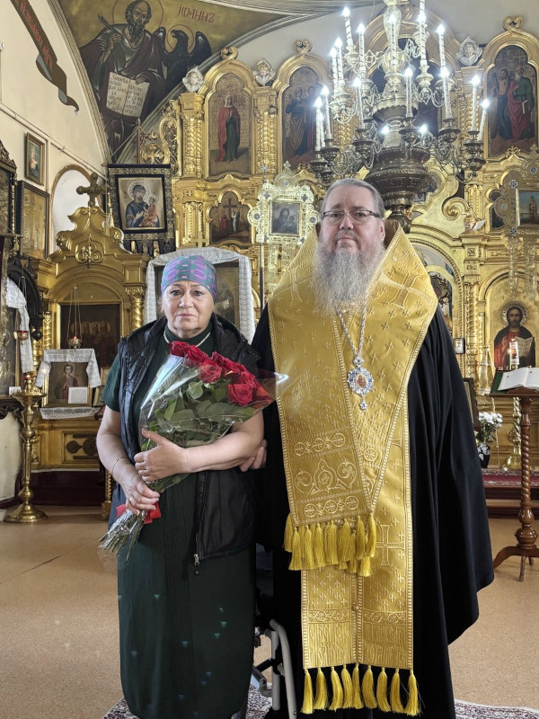 В этот же день в храме звучали слова поздравления в адрес одного из старейших работников храма Всех Святых. Валентине Петровне Костаревой исполнилось 70 лет. Более половины жизни юбиляр отдала служению Богу в храме. Самые различные послушания, исполняемые ею с душой, привели к благоукрашению храма в праздники, приготовлению обедов в трапезной храма, пошиву церковных облачений. А скольким людям Валентина Петровна послужила ориентиром по пути в жизнь вечную. Когда-то служение в церкви именно с о. Иоанном дало ей старт к церковному служению. За труды на благо Православной Церкви Казахстана Валентина Петровна была награждена священноначалием наградами Митрополии. Были провозглашены уставные многолетия, а хор храма пропел юбиляру здравницу Многая Лета.
