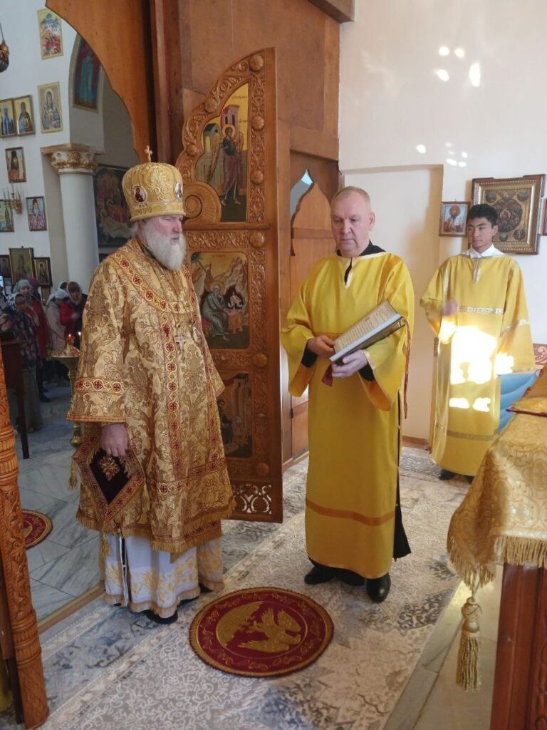Преосвященному владыке сослужил и.о. настоятеля храма иерей Даниил Ивашинин.