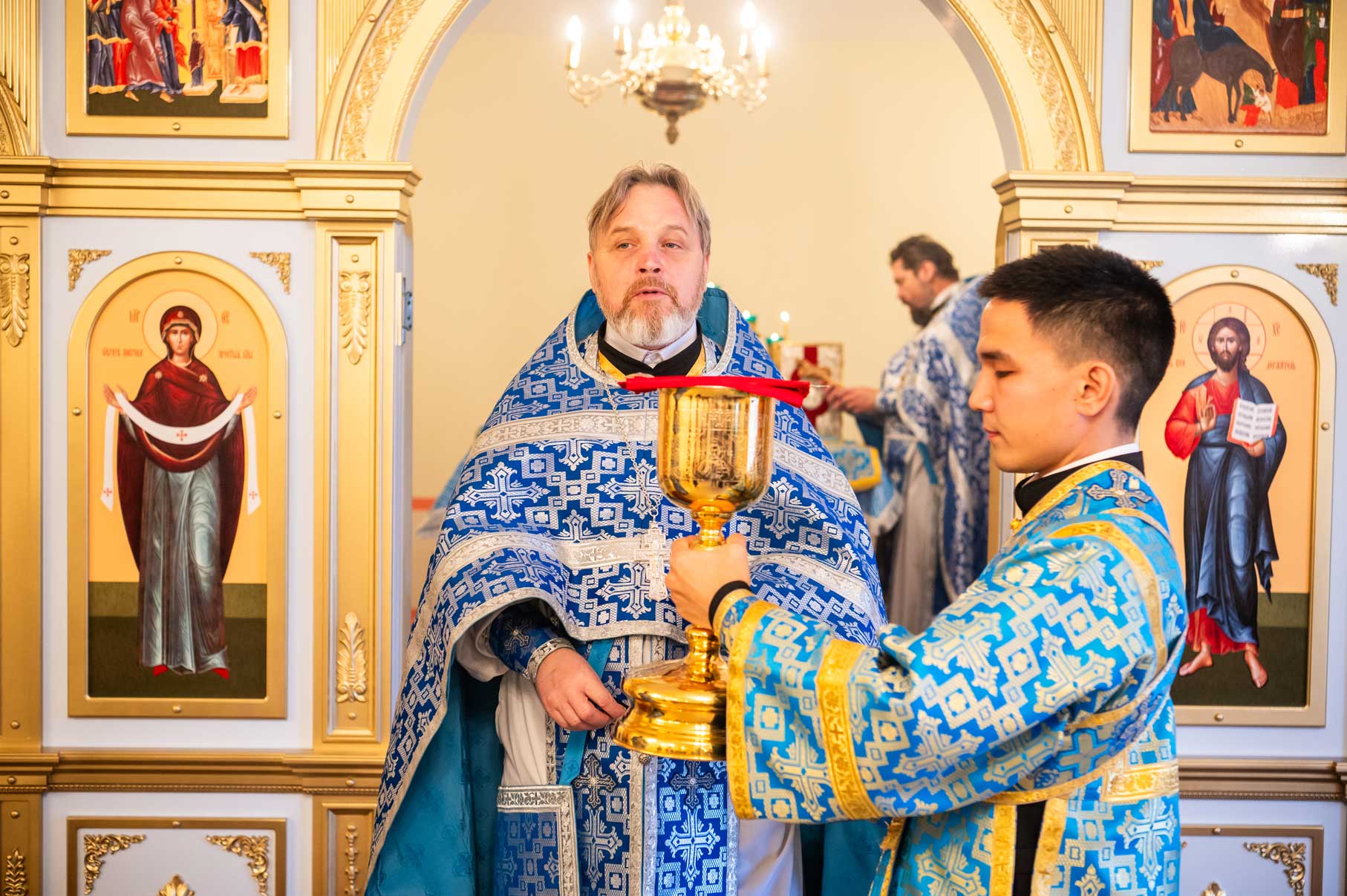 Ему сослужили благочинный Лисаковского церковного округа и настоятель Покровского храма протоиерей Олег Калмыков; благочинный Костанайского церковного округа иерей Андрей Крутин; благочинный Сарыкольского церковного округа протоиерей Виталий Клеба; настоятель храма великомученика Пантелеимона города Житикара иерей Игорь Нестеров.