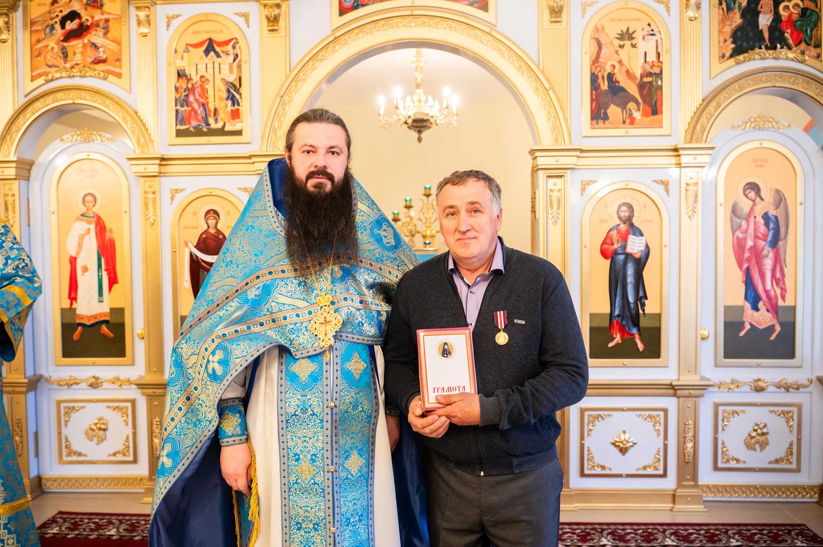По окончании торжества состоялось награждение старосты храма Куряченко Алексея Владимировича и благодетелей, внёсших значительный вклад в обновление и благоукрашение Покровского храма Асенкритовки.