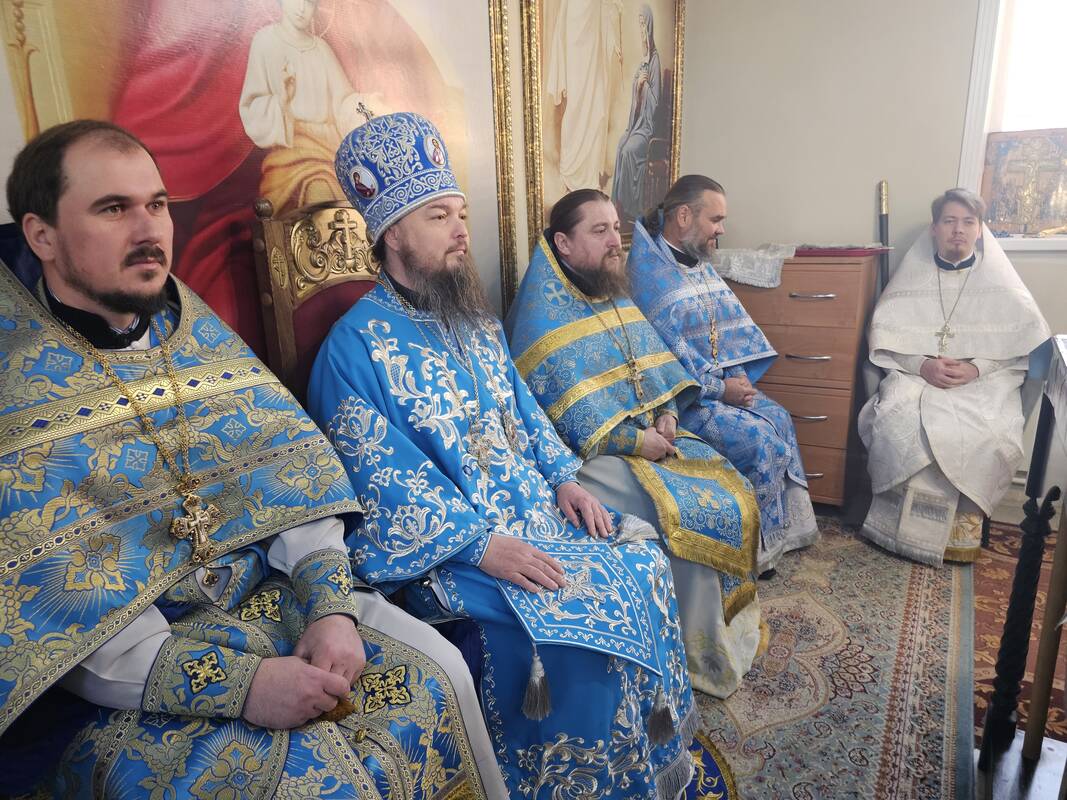 Его Преосвященству сослужили: благочинный Приурального округа протоиерей Василий Кроитор, благочинный Уральского округа протоиерей Владимир Гарасим, настоятель храма Казанской иконы Божией Матери п.Дарьинское, протоиерей Георгий Леонидович Лемачко, клирик кафедрального собора Михаила Архангела г.Уральска, протоиерей Георгий Владимирович Лемачко, клирик Бузулукской епархии, иерей Артемий Шапиров, клирик кафедрального собора Михаила Архангела г.Уральска, диакон Владимир Лемачко.