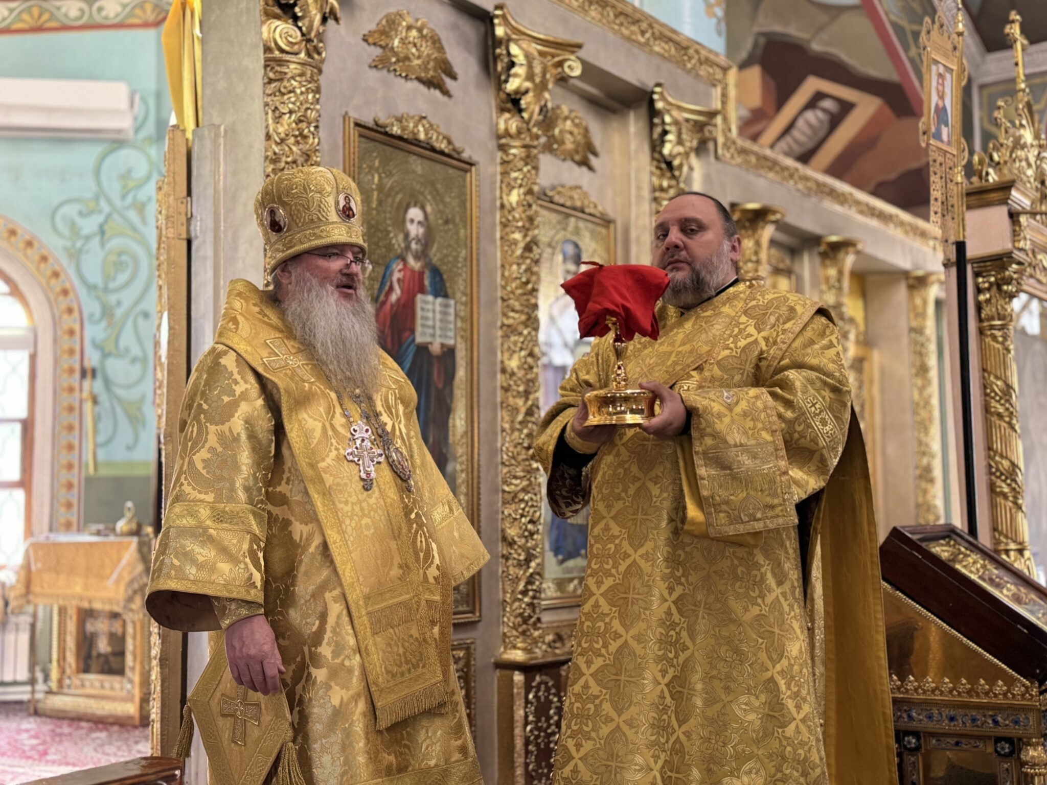 Преосвященнейшему Хрисанфу сослужили клирики собора: иеромонах Сергий (Бутин), иеромонах Николай (Строев), диакон Иоанн Абакук.