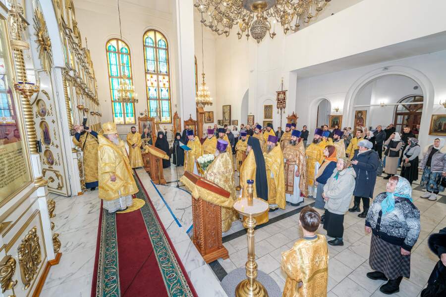 За Божественной литургией в главном храме епархии архипастырю сослужили клирики епархии: благочинный Экибастузского церковного округа и настоятель Иверско-Серафимовского собора Экибастуза протоиерей Игорь Попов, ключарь Христо-Рождественского собора Павлодара протоиерей Константин Кутасевич, секретарь Павлодарской епархии и благочинный Павлодарского церковного округа протоиерей Алексий Степанов, настоятель Воскресенского храма города Аксу иеромонах Иосиф (Коблов), благочинный Теренкольского церковного округа и настоятель Трехсвятительского храма села Теренколь протоиерей Владимир Трубаченко, настоятель Ильинского храма села Песчаное протоиерей Олег Миронов, ключарь Михаило-Архангельского храма города Павлодар иерей Артемий Жданов, клирик Благовещенского кафедрального собора иерей Сергий Голубничий, настоятель Никольского храма города Аксу иерей Дмитрий Ронин, клирик Петропавловского храма при соименном женском монастыре иерей Александр Малыгин, настоятель Елизаветинского храма села Щербакты иерей Вячеслав Фоменко, настоятель Александро-Невского храма села Иртышск иерей Андрей Андреев, настоятель Троицкого храма села Железинка иеромонах Павел (Кузякин), настоятель храма Всех святых в земле Российской просиявших поселка Солнечный иерей Василий Ткачук, диаконы Амвросий Таукенов, Артемий Неуструев и Валерий Доброконь.