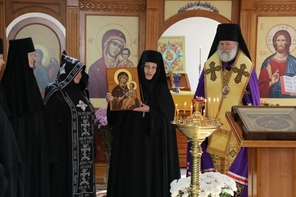 В дар новообразованной обители ею был приподнесен образ Иверской Пресвятой Богородицы, специально написанный мастерами женского монастыря города Орска.