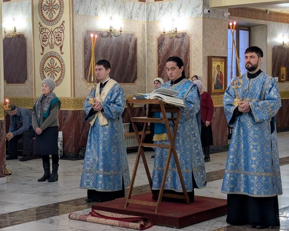 Его Высокопреосвященству сослужили клирики кафедрального собора Воскресения Христова г. Кокшетау: протоиерей Константин Копнин, диакон Уар Жазитов, диакон Максим Клементьев.