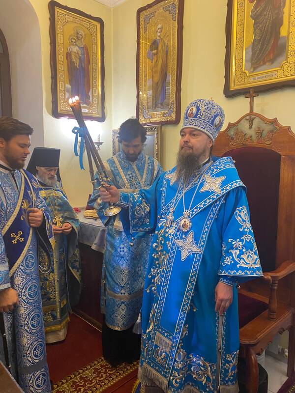 По заамвонной молитве, перед иконой Введения Пресвятой Богородицы во храм состоялось славление празднику, после чего владыка Вианор поздравил духовенство и верующих с двунадесятым богородичным праздником и обратился к собравшимся со словом архипастырской проповеди и окропил молящихся освящённой водой.