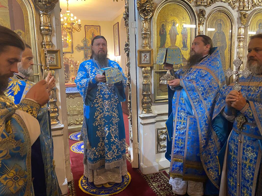 Его Преосвященству сослужили: благочинный Уральского округа и настоятель Спасо-Пребраженского храма г.Уральска, протоиерей Владимир Гарасим, клирик Покровского женского монастыря г.Уральска, игумен Дорофей (Дильманаев), клирик Спасо-Преображенского храма г.Уральска, протоиерей Александр Пушин, клирик кафедрального собора Христа Спасителя г.Уральска, иерей Анатолий Гиляшев, клирик кафедрального собора Михаила Архангела г.Уральска, диакон Владимир Лемачко.