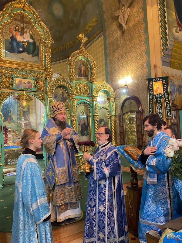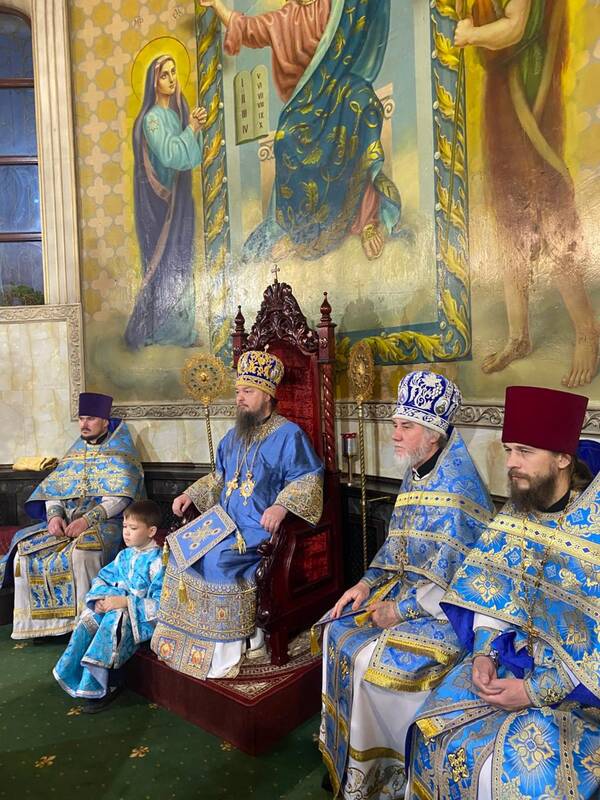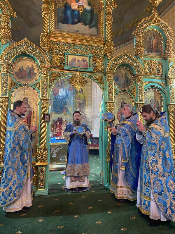 В завершение богослужения Его Преосвященство обратился со словами архипастырского поучения и поздравил духовенство, прихожан с Воскресным днем и именников с днем Ангела.
