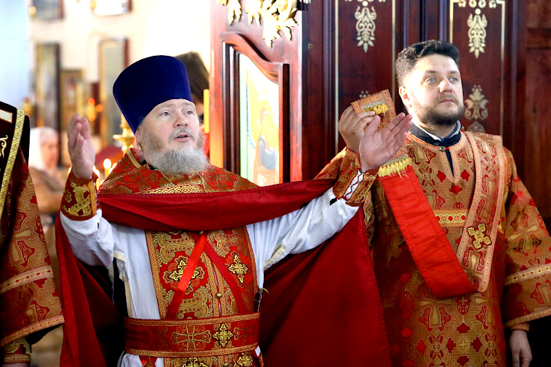 На Литургии было прочитано Евангельское Зачало 71 от Луки: Иисус учил в субботу в одной из синагог. Там была женщина, вся скрюченная, она совсем не могла разогнуться, потому что в ней был нечистый дух, который держал ее в болезни восемнадцать лет. Увидев женщину, Иисус подозвал ее и сказал: Ты избавлена от болезни. Он возложил на нее руки, и она сразу выпрямилась и стала благодарить Бога. Старейшина синагоги, разгневанный тем, что Иисус вылечил ее в субботу, сказал народу: Для работы есть шесть дней. В эти дни и приходите лечиться, а не в субботу. Но Господь ответил ему: Лицемеры! Разве каждый из вас не отвязывает в субботу быка или осла от стойла и не ведет поить? А ведь она дочь Авраама, и Сатана целых восемнадцать лет держал ее связанной! Так неужели нельзя развязать ее путы в субботний день?! От этих слов всем Его противникам стало стыдно, а весь народ радовался удивительным делам, которые Он совершал. (Лк. 13: 10-17)