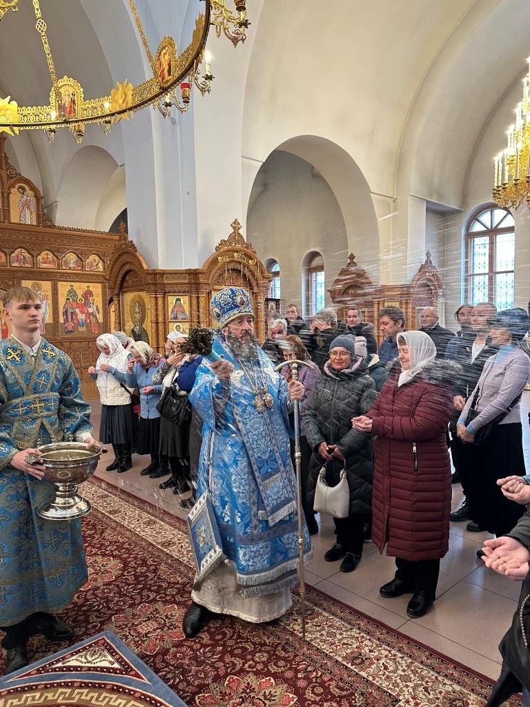 Владыке архиепископу сослужили: ключарь Андреевского кафедрального собора иеромонах Никодим (Авдеев), клирики кафедрального собора иерей Роман Подрезов и иерей Константин Дьяков, протодиакон Андрей Дудник, секретарь епархии диакон Илия Кван, диакон Кирилл Рамазанов.