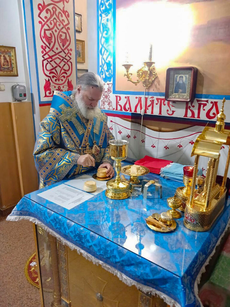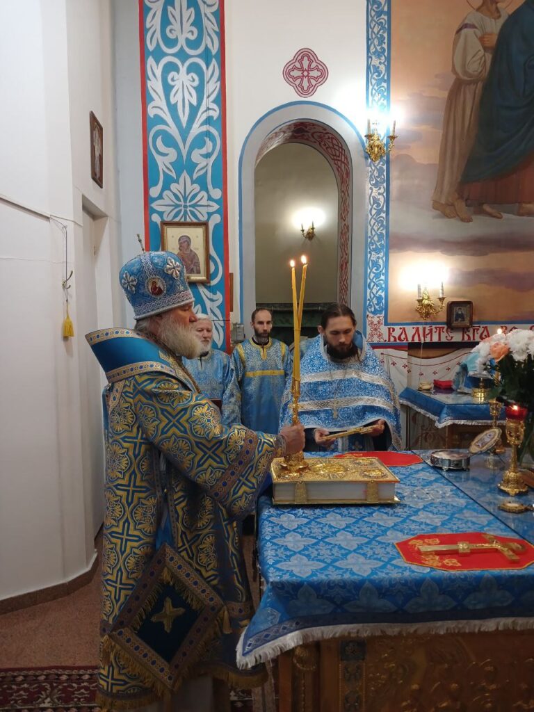 Преосвященному владыке сослужили: ключарь собора иерей Леонид Худяков, иерей Роман Сайтиев, диакон Сергий Мешков.