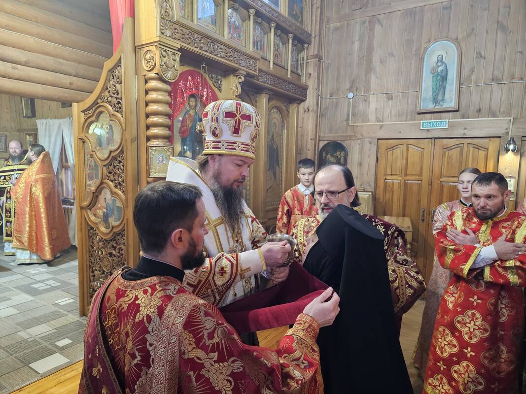 Его Преосвященству сослужили: настоятель кафедрального собора Христа Спасителя г.Уральска, протоиерей Анатолий Робу, клирик Покровского женского монастыря г.Уральска, архимандрит Дионисий (Козулев), благочинный Уральского округа протоиерей Владимир Гарасим, настоятель храма Казанской иконы Божией Матери с.Дарьинское, протоиерей Георгий Лемачко, клирик Покровского женского монастыря г.Уральска, игумен Дорофей (Дильманаев), благочинный Приурального округа, протоиерей Василий Кроитор, клирик Покровского женского монастыря г.Уральска, иерей Андрей Морозкин, клирик кафедрального собора Христа Спасителя г.Уральска, протодиакон Иоанн Рошка, клирик кафедрального собора Михаила Архангела г.Уральска, иеродиакон Арсений (Рыбальченко).