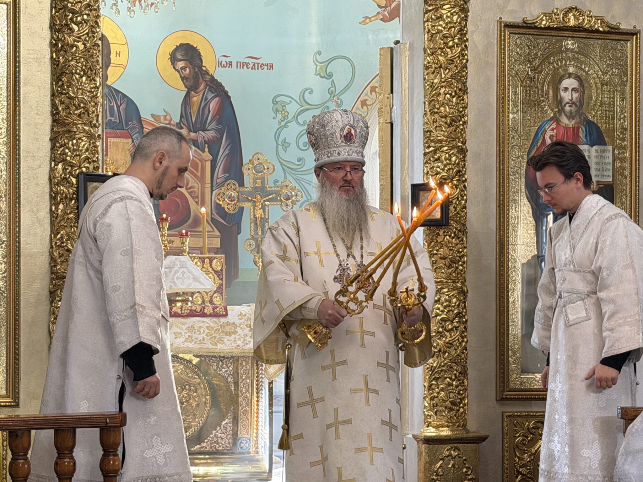 В завершение богослужения духовенство и хор пропели славление Празднику, и владыка Хрисанф обратился к молящимся со словами проповеди.