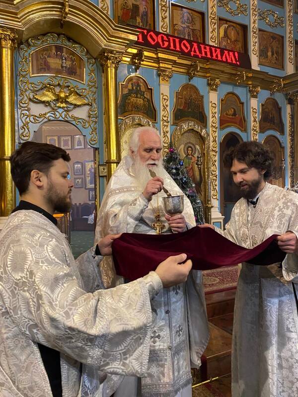 В завершении богослужения Его Преосвященство поздравил духовенство и прихожан с праздником Святого Крещения Господня и памятью Святого пророка и Предтечи Господня Иоанна и преподал архиерейское благословение.