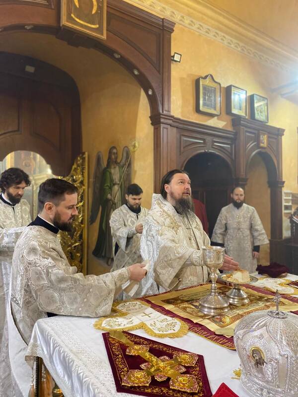По запричастном стихе проповедь произнес иеродиакон Спиридон.