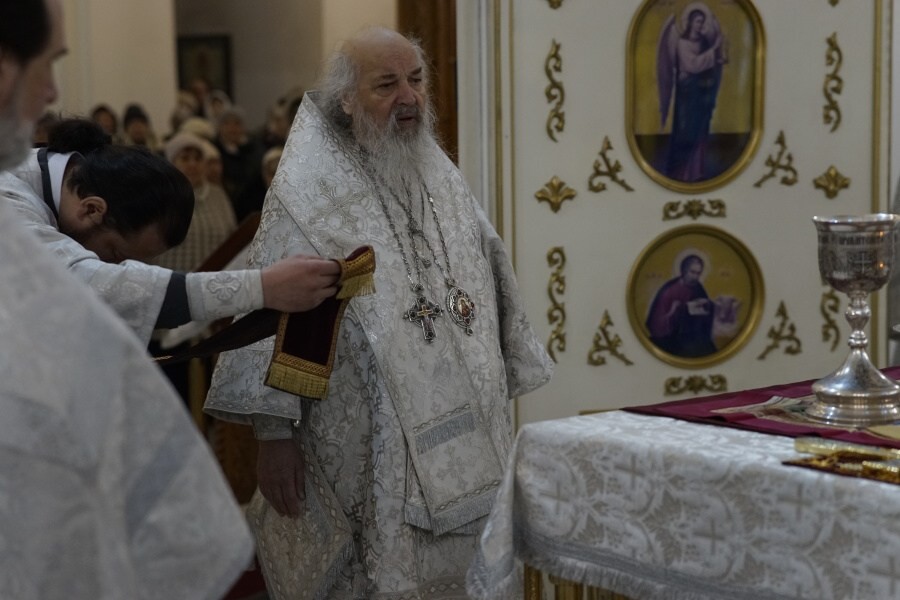 19 января, в самый день праздника Святого Богоявления, архиепископ Варнава совершил Божественную литургию святителя Василия Великого. Владыке архиепископу сослужили клирики Благовещенского кафедрального собора: протоиерей Алексий Степанов, иерей Сергий Голубничий и диакон Амвросий Таукенов.