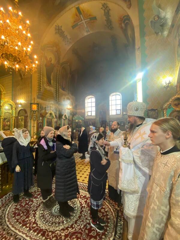 Его Преосвященство, Преосвященнейший Вианор епископ Уральский и Атырауский совершил Божественную литургию в кафедральном соборе Христа Спасителя г.Уральска. Накануне Его Преосвященство совершил всенощное бдение и после чтения Воскресного Святого Евангелия помазал молящихся елеем.
