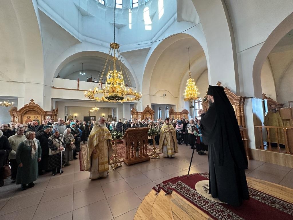 Перед причастием мирян проповедовал иеромонах Никодим (Авдеев). В завершение воскресной Божественной Литургии архиепископ Амфилохий обратился к клиру и молящимся со святительским словом.