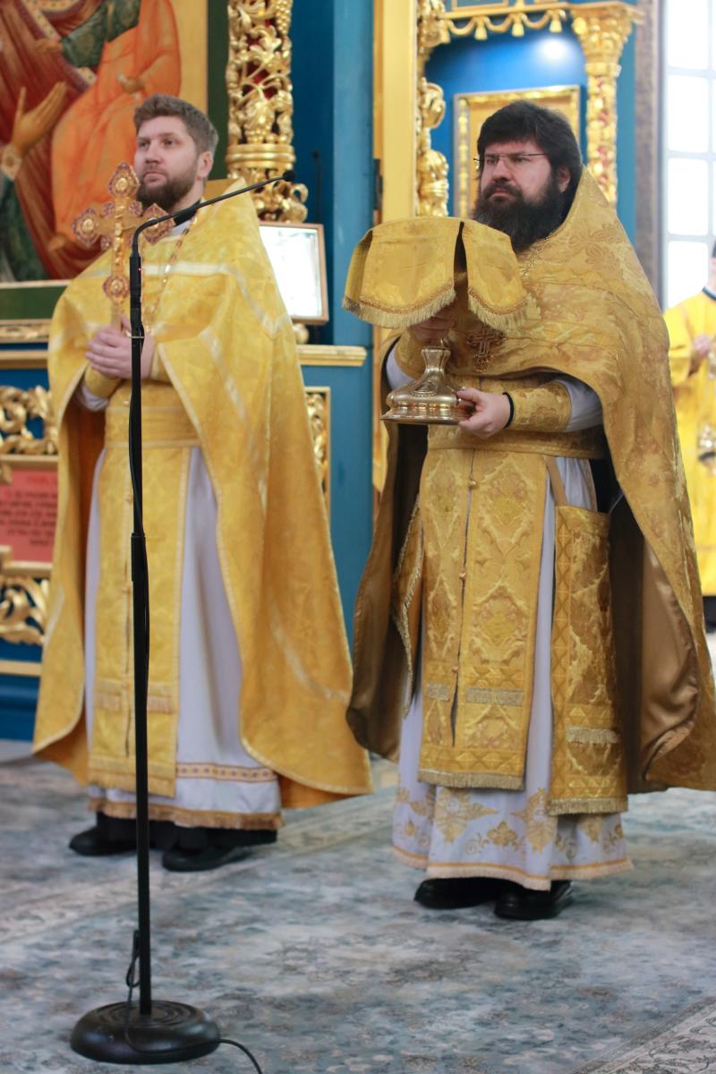Отцу Благочинному сослужили: иерей Виктор Дрожников, диакон Илья Давыдов, диакон Михаил Чумаков, диакон Ярослав Вохменцов.