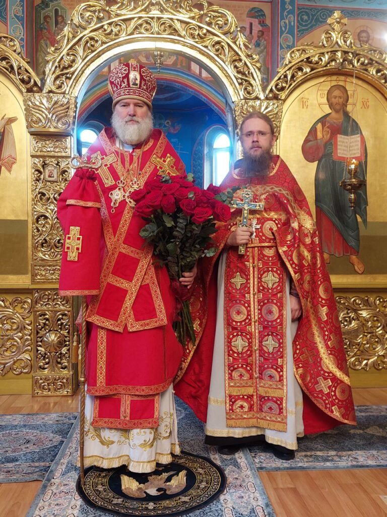 Его Преосвященству сослужили: настоятель Михайло-Архангельского храма села Тургень иеромонах Варсонофий (Ларионов), личный секретарь Его Преосвященства, клирик подворья иеромонах Амвросий (Дудонов).