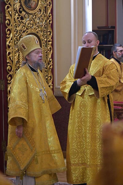 По благословению митрополита Астанайского и Казахстанского Александра управляющий делами Православной Церкви Казахстана епископ Каскеленский Геннадий возглавил Божественную Литургию в Вознесенском кафедральном соборе Алма-Аты.