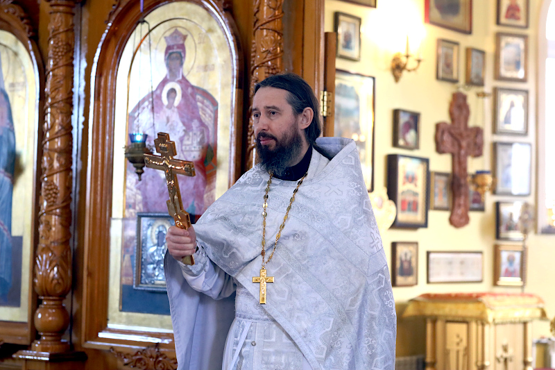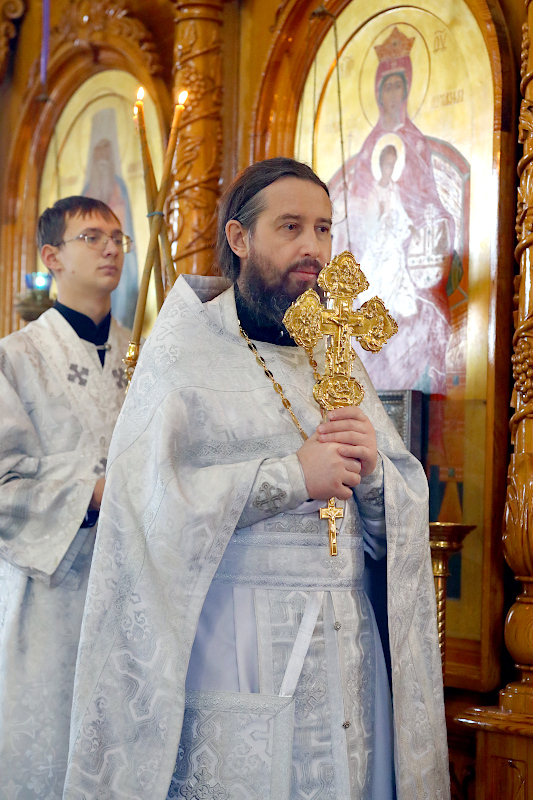 На Литургии был прочитан отрывок из Евангелия Зачало 16 от Иоанна: Рече Господь ко пришедшым к Нему иудеем: аминь, аминь глаголю вам, яко слушаяй словесе Моего и веруяй Пославшему Мя имать живот вечный, и на суд не приидет, но прейдет от смерти в живот. Аминь, аминь глаголю вам, яко грядет час, и ныне есть, егда мертвии услышат глас Сына Божия и услышавше оживут. Якоже бо Отец имать живот в Себе, тако даде и Сынови живот имети в Себе и область даде Ему и суд творити, яко Сын Человечь есть. Не дивитеся сему, яко грядет час, в оньже вси сущии во гробех услышат глас Сына Божия, и изыдут сотворшии благая в воскрешение живота, а сотворшии злая в воскрешение суда. Не могу Аз о Себе творити ничесоже. Якоже слышу, сужду, и суд Мой праведен есть, яко не ищу воли Моея, но воли пославшаго Мя Отца. (Ин 5:24–30)