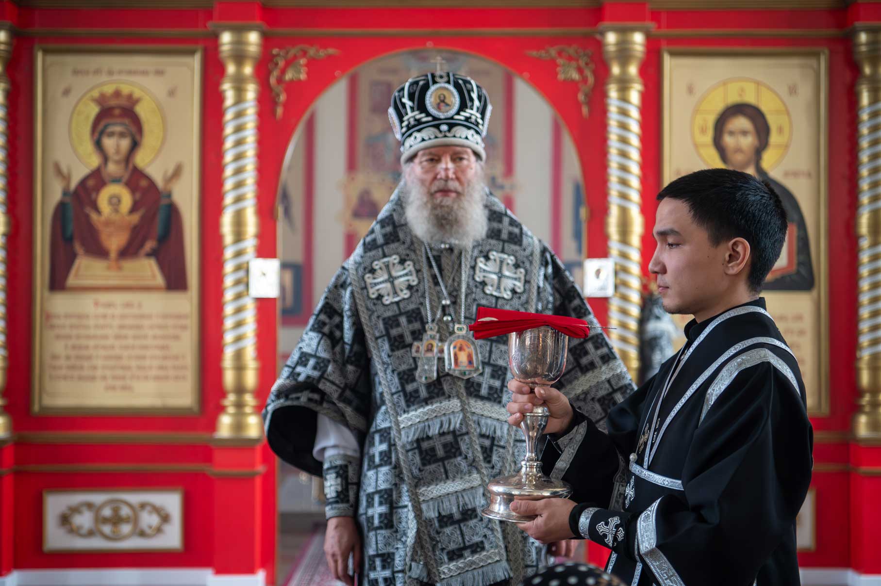 В Свято-Никольском храме города Костаная, по благословению митрополита Астанайского и Казахстанского Александра, Богослужение возглавил секретарь Костанайской епархии иеромонах Геннадий (Бурдюжа) в сослужении духовенства храма.