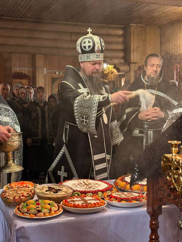 По заамвонной молитве епископ Вианор возглавил молебное пение великомученику Феодору Тирону и освятил коливо.