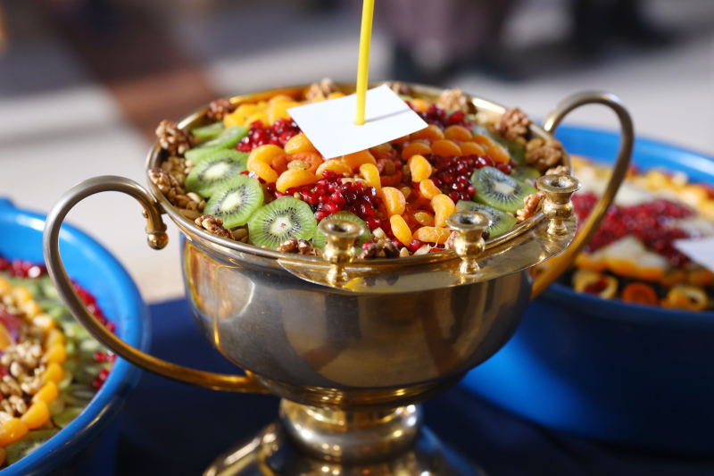 По заамвонной молитве Владыка Владимир с сослужащим духовенством совершил уставное молебное пение великомученику Феодору Тирону с чином освящением колива.