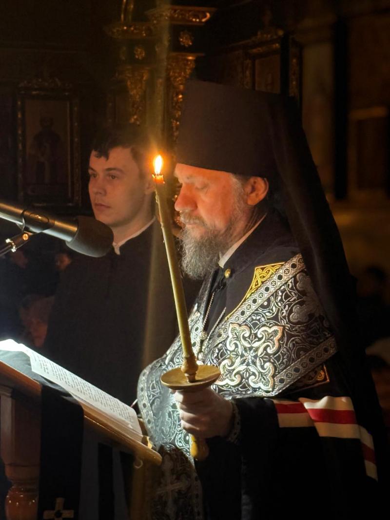 Управляющий делами Православной Церкви Казахстана епископ Каскеленский Геннадий совершил великое повечерие с чтением заключительной части канона святителя Андрея Критского в Успенском кафедральном соборе.