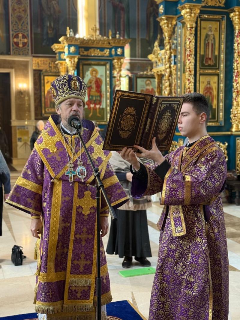 Управляющий делами Православной Церкви Казахстана епископ Каскеленский Геннадий совершил Литургию Преждеосвященных Даров святителя Григория Двоеслова в Успенском кафедральном соборе.