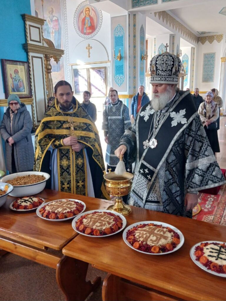 27 февраля 2026 года, в пятницу первой седмицы Великого поста епископ Актюбинский и Кызылординский Игнатий совершил вторую Литургию Преждеосвященных Даров в наступившей Четыредесятнице с традиционным освящением колива в Свято-Никольском соборе Актюбинска.