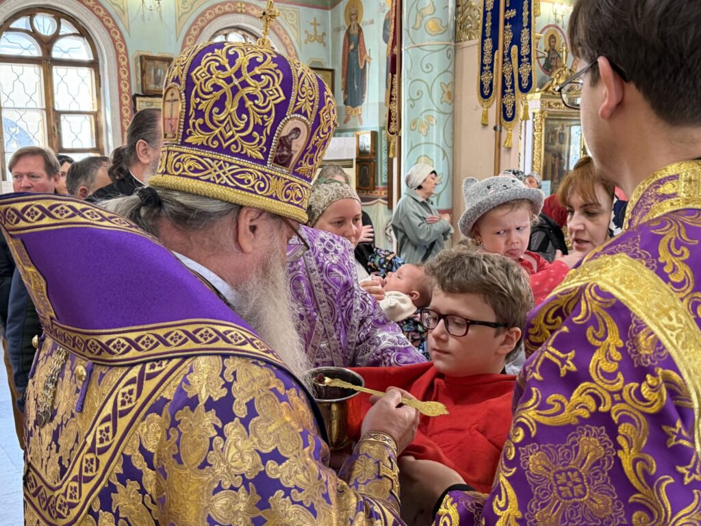 Преосвященнейшему Хрисанфу сослужили клирики собора.