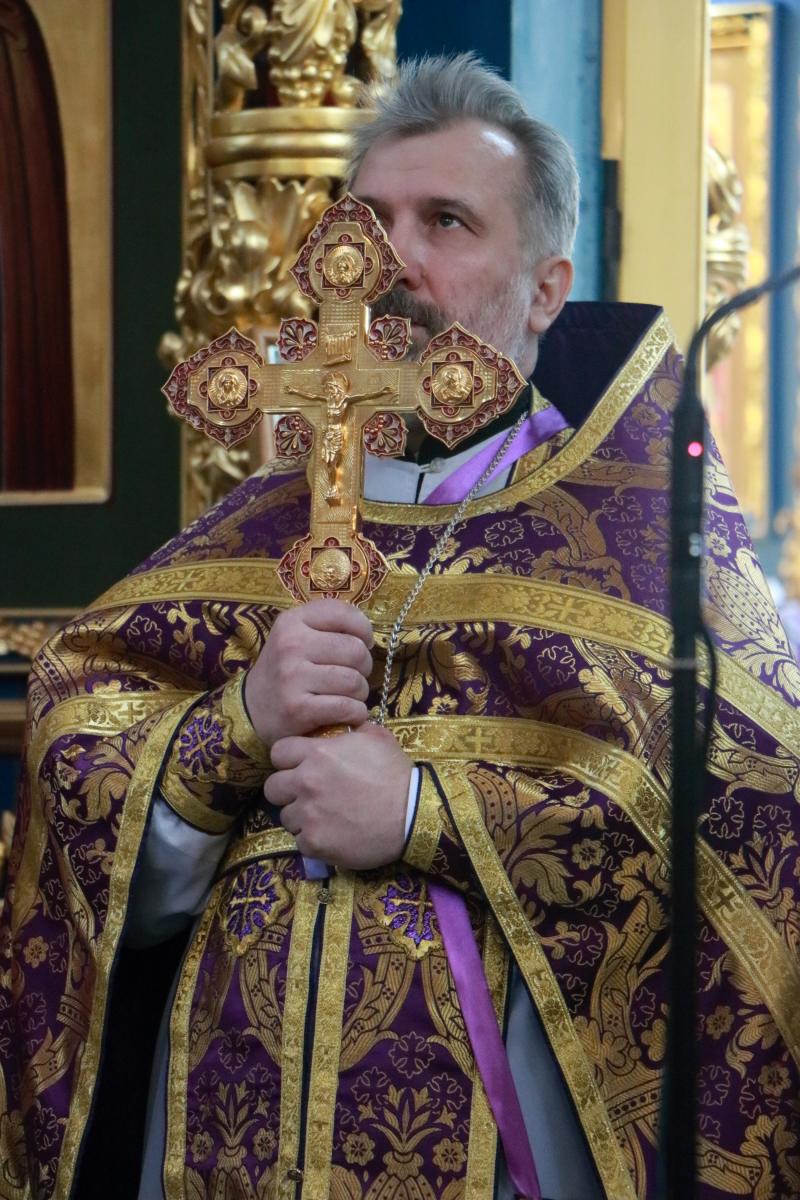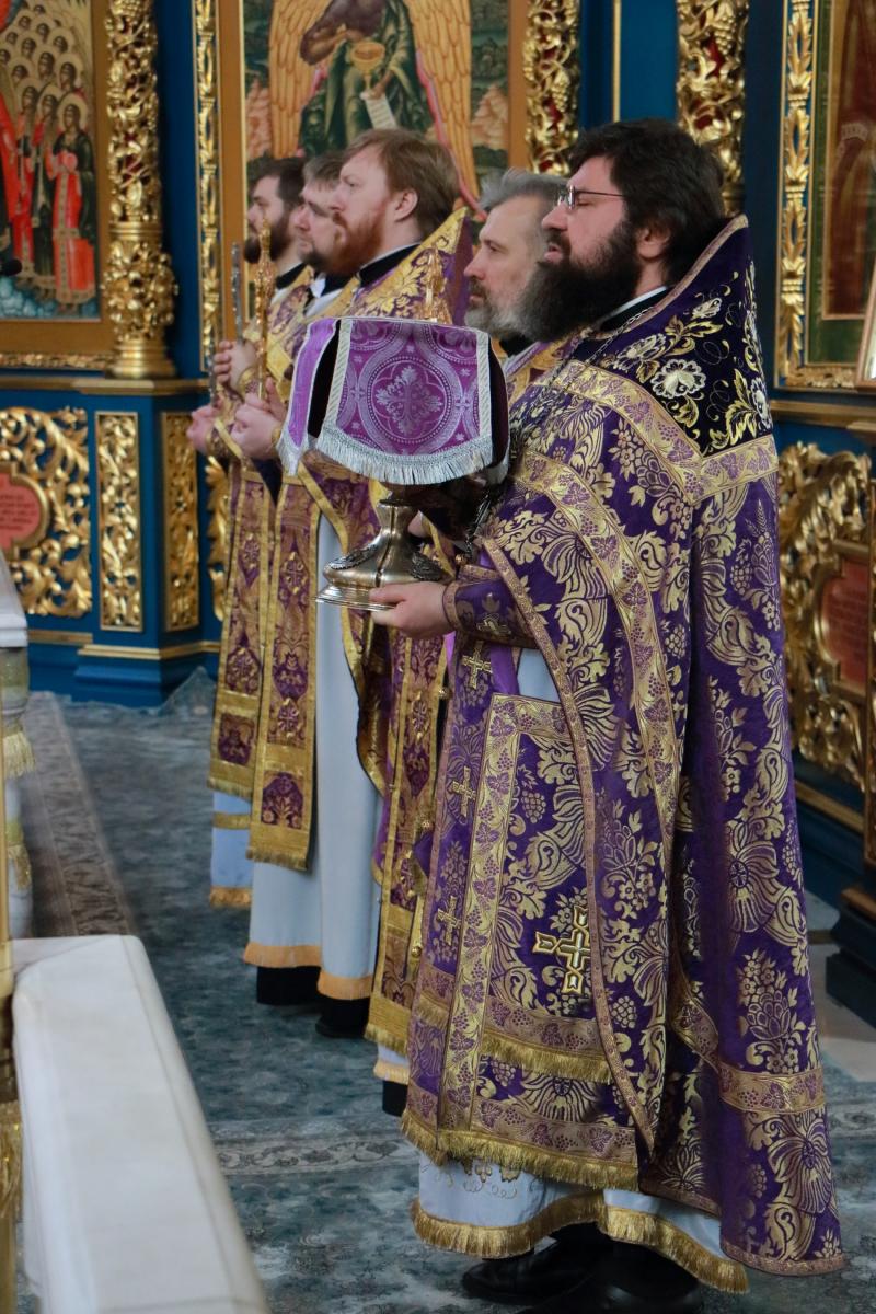 Отцу Благочинному сослужили: протоиерей Евгений Корольков, иерей Сергий Дианов, иерей Андрей Шидловский, иерей Николай Горячев, диакон Илья Давыдов, диакон Михаил Чумаков, диакон Ярослав Вохменцев.